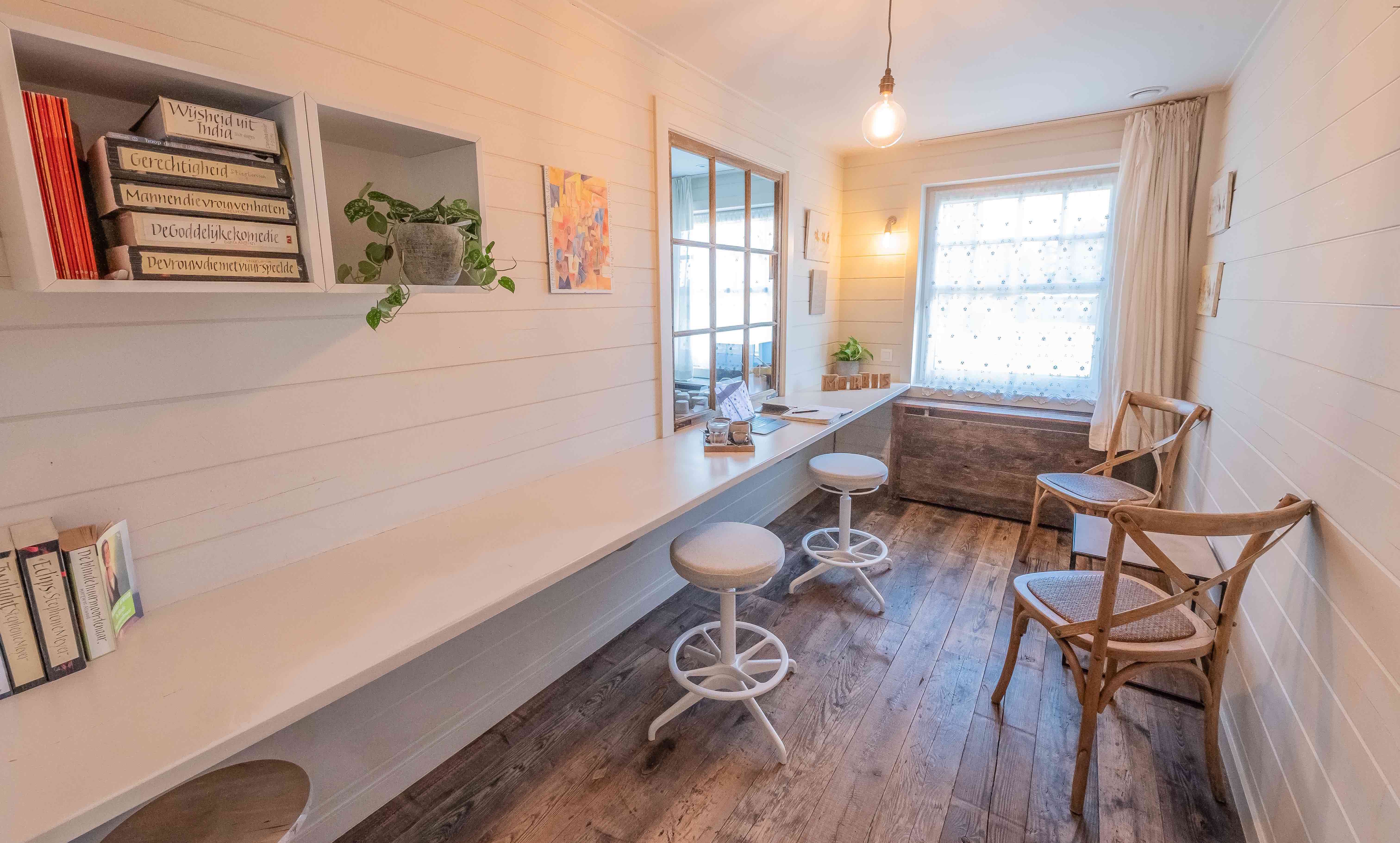 Wij hebben sind kort ook een aparte werkruimte. Deze gezellige kamer naast de koffiebar kan je reserveren om een paar uurtjes, een halve, of een hele dag te werken, voor vergaderingen, meetings etc. Je kan hier dan ook alles bestellen van de koffiebar! (koffie/thee/gebakje/lunch/ontbijt...) Stuur ons een mailtje op info@morriscoffeeandcrafts.be of bel ons voor meer informatie of reservatie! De tarieven voor de huur van het werpunt: